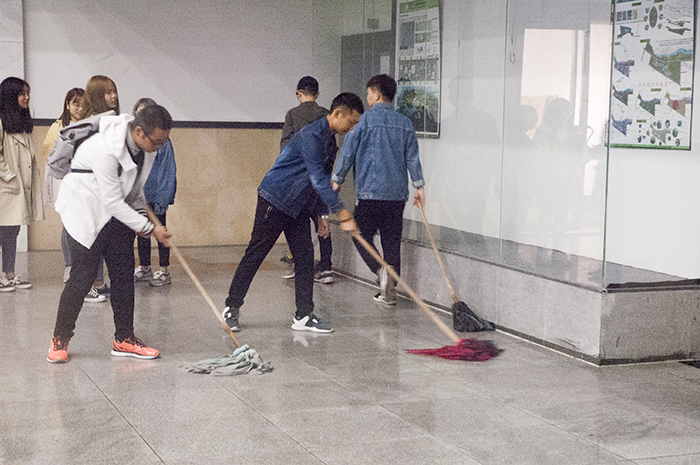学院积极动员广大师生参与校园卫生大扫除活动,制定了详细的任务分工,以学生会各部门为单位划分了多个卫生责任区域。各部门按照学院精神的要求,一起行动,拿起扫帚、拖把、抹布等劳动工具,对教学楼环境卫生展开了大扫除。活动中,大家个个热情高涨,干劲十足,半天功夫,就对办公场所、教室的卫生死角和户外卫生包干区绿化带上的白色垃圾、枯枝杂草进行了全面清理打扫,做到不留一片垃圾、不见一个烟头。他们在劳动中哼唱着歌曲,脸上透露出劳动所带来的欢乐笑容,显示着他们饱满的热情和积极的状态。