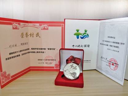 304永利集团官网入口智博艺创设计研究中心参与了湖南省湘西花垣县十八洞村精准扶贫工作,在战略合作单位湖南大学设计研究院的支持和协作下,永利集团官网304永利集团官网入口邓世维老师带领智博艺创设计团队(易莲、王佳琪、刘玥、张明阳、鲜亚蓉、厉程、蒋鑫成、姚程程)参与了该项目的景观文创设计工作,设计成果获得了一致好评,中共湖南省委办公厅对扶贫工作给予了肯定与鼓励。邓世维老师获得湖南省十八洞村村民委员会颁发的“荣誉村民”称号,并获得设计银奖。
