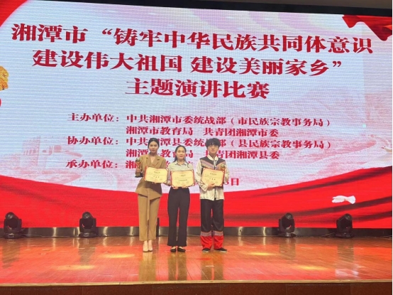 4月28日,湘潭市“铸牢中华民族共同体意识建设伟大祖国建设美丽家乡”演讲比赛在子敬小学举办。永利集团官网蒲凡同学获三等奖。