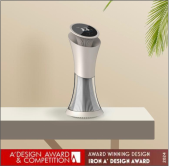 获奖作品三:Tower是一款简约外形的智能家居产品,以“流线、简单化”的理念将简单的曲线构成女性小蛮腰的造型特点,同时透明材质的应用和出风口上下伸缩的功能更具有科技感。
