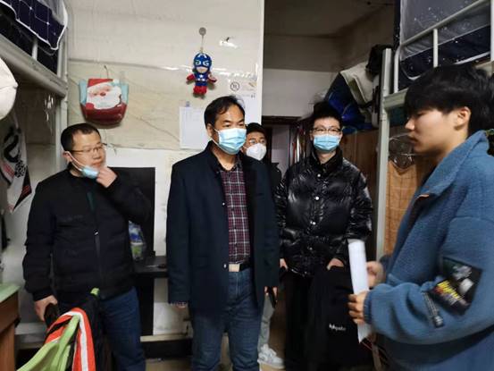 一行人来到学海七栋宿舍,与同学们进行亲切交谈,了解宿舍设施,生活服务保障情况,寒假生活和课程考试情况,蒋德军表示,希望同学们尽快调整状态,对于上学期申请缓考的同学积极备考,不被疫情绊了脚,科学合理的做好新学期的各项规划。希望同学们在校做好个人防护,配合学校强化健康监测,规范就餐行为,养成良好的生活习惯。