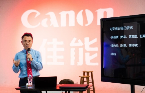 佳能中国上海分公司专品部杨俊围绕佳能电影摄像机、佳能系列产品特点、佳能产品设计理念以及VR拍摄设备的技术变革等方面作了“专业影像技术交流”主题讲座。