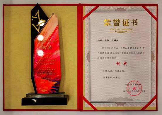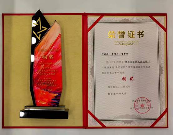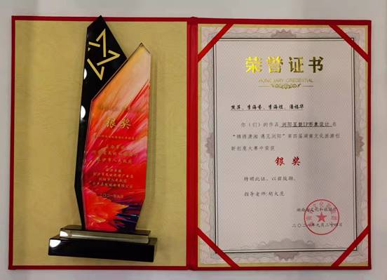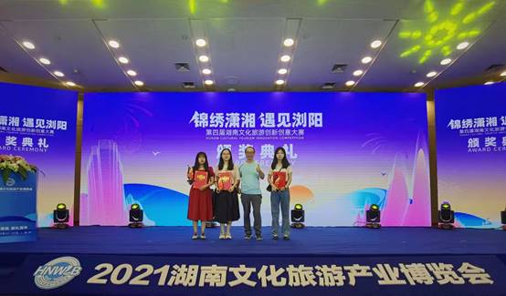 由湖南省文化和旅游厅、长沙市人民政府主办的“锦绣潇湘 遇见浏阳”第四届湖南文化旅游创新创意大赛颁奖典礼暨成果展于湖南国际会展中心隆重举行,本次活动也是2021年湖南旅博会的八大主体活动之一。颁奖典礼上,永利集团官网304永利集团官网入口胡大虎老师指导的熊萍、李海芬、李海煜、潘福华,杨鹏、张彪、陈雅琪,何婷婷、唐碧婷、李梦斌等学生组成的三个设计团队分获大赛银奖一个、铜奖二个,获总奖金四万元,永利集团官网是本次比赛获奖最多的单位。在颁奖活动现场的大赛优秀作品转化签约环节中,湖南文化创意有限公司与永利集团官网设计团队指导老师及相关文创文旅企业签订了转化协议,促进大赛获奖作品迅速转化成产品,服务于社会和企业。