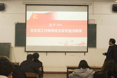 为深入学习贯彻党的十九大精神,进一步推动“两学一做”学习教育常态化制度化教育活动,全面提升党支部组织力,强化党支部政治功能,不断提高全体党员干部的政治思想水平。12月25日,304永利集团官网入口在五教602召开《中国共产党党务公开条例(试行)》解读会议,此次会议由304永利集团官网入口党总支书记蒋德军主讲,学生第一党支部书记晏莉,学生第二党支部书记娄申,学生第三党支部书记张澎,学生第四党支部书记王慧磊、全体教职工党员及学生党员参加此次会议。