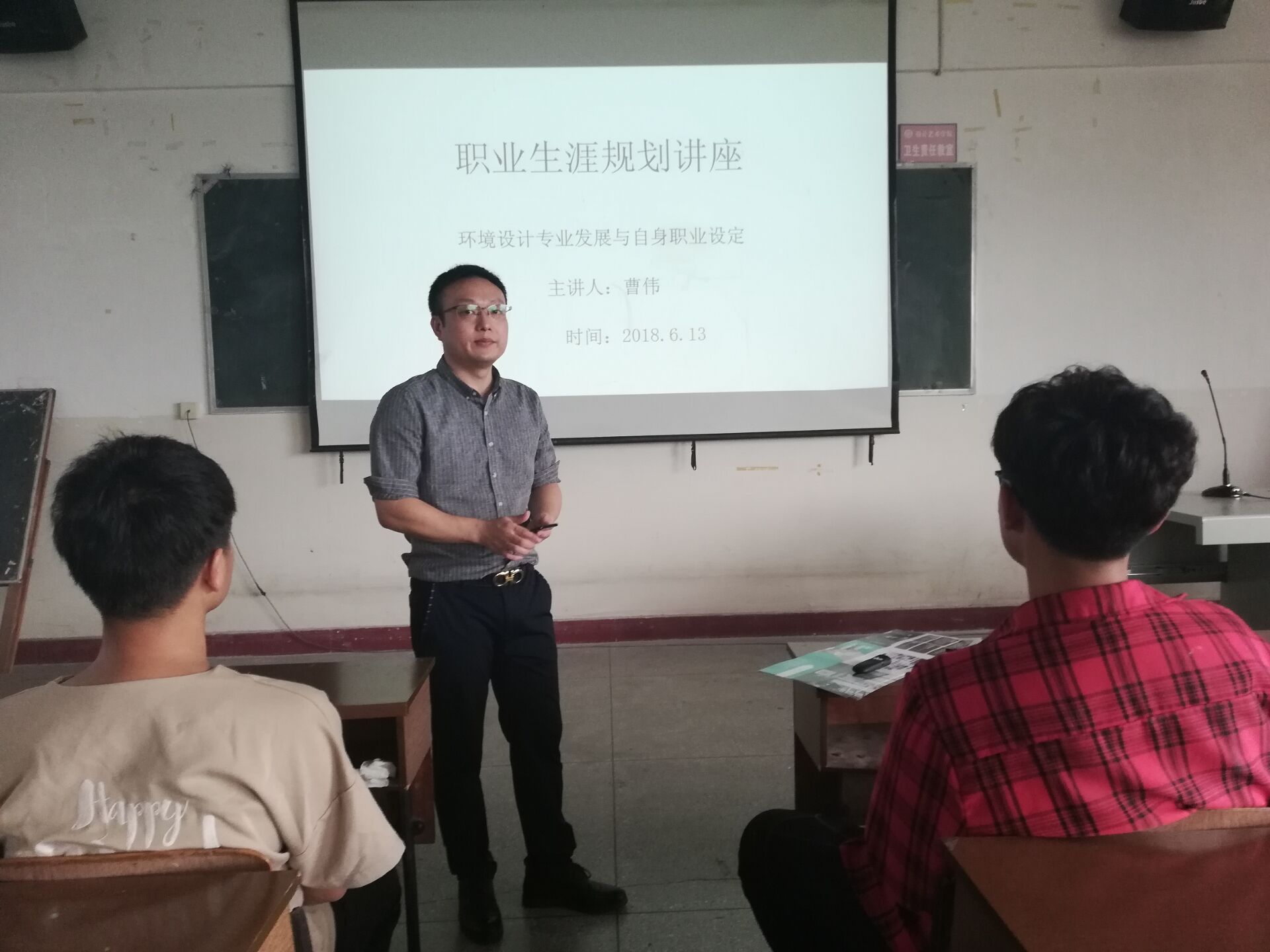 为了使学生树立正确的职业生涯理念,明确未来目标和发展方向,永利集团官网邀请曹伟为永利集团官网环境设计专业学生作职业生涯规划讲座。