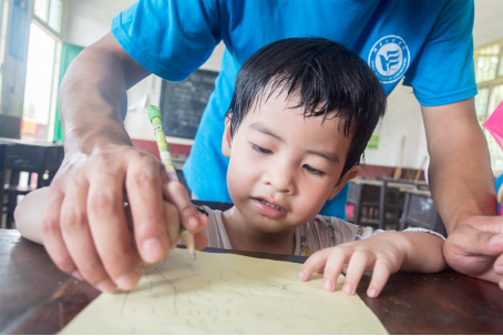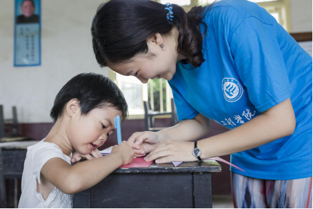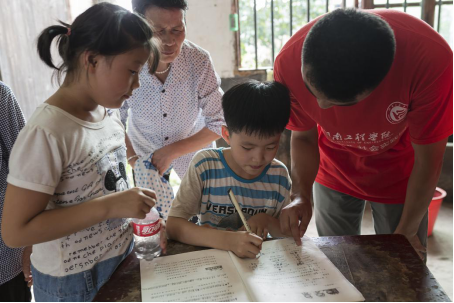 (图为志愿者到当地留守儿童家中为小朋友辅导功课)