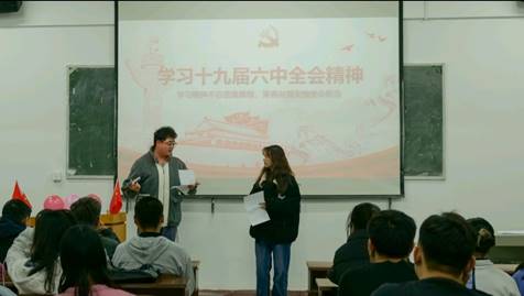 全体人员观看十九届六中全会全体会议公报视频,张梦秋同志以《用赤子之心承担时代重托—19位党的十九大基层代表和他们的故事》PPT形式进行讲解代表故事,栓释代表精神,党员和团员代表分别围绕十九届六中全会精神,分享自己的学习收获,以及观看代表故事受到的感悟启发,在活动最后广告2102班的同学也和大家分享了自己对党的认识以及自己为什么想要加入中国共产党。