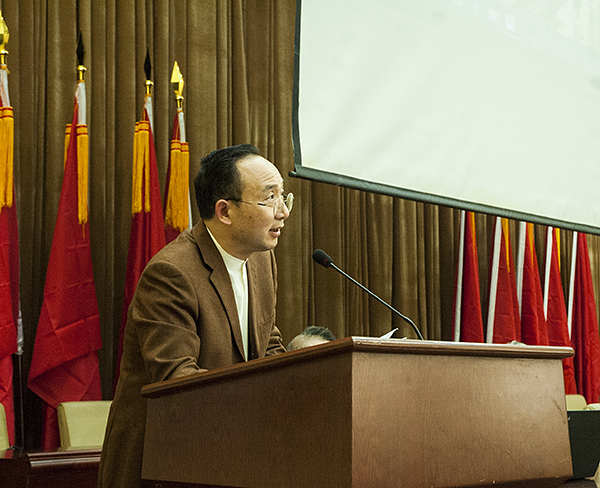 5月11日下午,304永利集团官网入口举办的的共青团系列讲座之“与信仰对话,为青春导航”,在主校区图书馆一报告厅举行。此次讲座由北京当代艺术馆执行馆长李铁军教授及中国书画艺术研究所副院长宋军生教授主讲,304永利集团官网入口院长段辉主持,304永利集团官网入口全体师生及应用技术学院部分师生聆听了本次讲座。