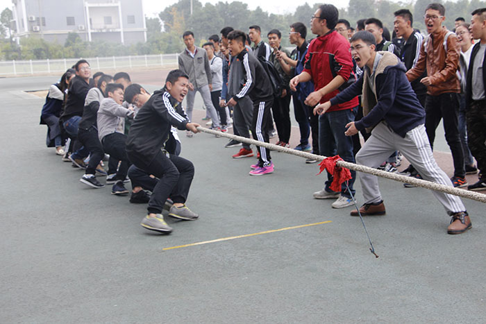 第一项赛程为拨河比赛,在第一回合比赛的哨声一响起,运动员们口中一起高呼着“一二,一二”, 双手紧握长绳,憋足了劲拼命往后拉,队伍两侧助阵加油声不绝于耳,恨不得抓起绳子和队员们一起努力!号子声、呐喊声,此起彼伏,飘荡在整个运动场场上空。