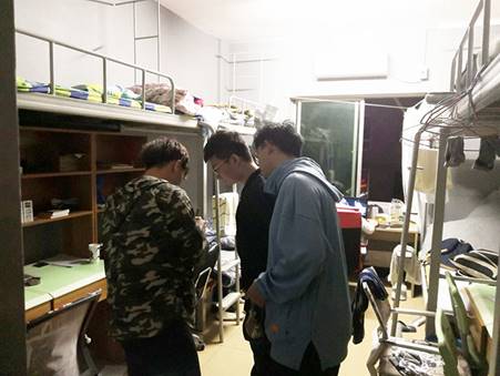 为了加强学生宿舍管理,规范学生行为。4月16日晚10点50分至12点,304永利集团官网入口开展了突击查寝的活动。本次查寝在党总支副书记张曙的带领下,全体辅导员深入到304永利集团官网入口各栋宿舍楼进行突击检查,对学生晚归、夜不归宿、内务卫生、宿舍安全等方面排查。