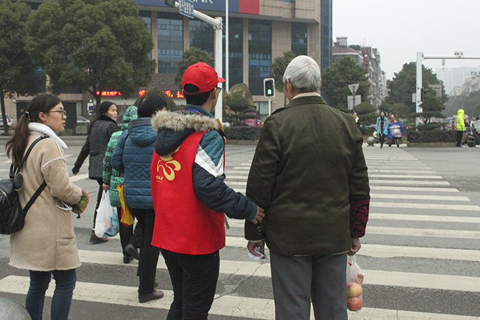 活动中,志愿者们统一身着红色马甲、头戴红帽、脖挂口哨,手拿“交通文明劝导旗”向过往行人进行交通安全常识宣传,劝导机动车和非机动车不要乱闯红灯,引导行人走人行道。早上七点志愿者便集合完毕,在寒风凛冽、毛毛细雨的恶劣环境中他们一丝不苟的工作态度,良好的精神面貌受到了过往行人的高度好评。304永利集团官网入口马旭东同学在做志愿者期间细心搀扶老奶奶过马路并告诉老奶奶要遵守交通规则,就在他回到岗位得时候遇见一位身着浅咖色羽绒服、脚着黑色皮鞋的微胖男子,男子向他询问是否是自愿做志愿者有没有酬劳,学校是否负责你们吃饭情况,马旭东同学一一作答,自己是自愿的没有任何酬劳、学校提供早餐。这位男子又向马旭东同学询问了其学校。不少违规者受到志愿者精神的感染,表示今后一定遵守交通规则。