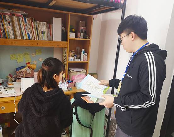 查寝的工作人员在查寝的时候态度亲切、有礼貌,受到了同学们的欢迎。在整个过程中干事们认真负责,对寝室卫生清理情况和整洁程度做了仔细检查,并且给每个寝室发放了防结核宣传资料以及给同学们讲解了结核病的防御知识,并强调要将宣传单贴于寝室门后时刻提醒自己。工作人员在离开每个寝室的时候,还温馨提醒同学们在结核病多发的春季应多开窗通风、保持个人和宿舍的卫生情况。整个检查过程进行得很顺利,各寝室同学都积极配合。