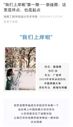 学院教学楼门口展示的胡冰晶和周洋两位国家奖学金获得者的优秀事迹海报,引得同学们驻足观看,纷纷表示会向优秀的学长学姐们看齐,以更加饱满地激情投入学习,争取将来在各自的领域发光发热。