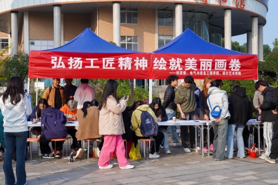 为丰富校园生活,弘扬工匠精神,11月14日下午,由校团委主办,永利集团官网和电气与信息工程学院共同承办的“弘扬工匠精神 绘就美丽画卷”活动在知行广场举行。一群青春飞扬的湖工学子手执五彩画笔,将工匠们的事迹和精神汇聚笔尖,绘就成长20米的巨幅画卷。