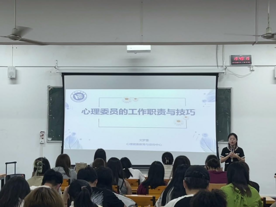 为了进一步推动永利集团官网学生心理健康教育,提升学生的心理健康素养,引导学生增强维护心理健康的意识与心理调适能力。永利集团官网于5月16日晚在五教602开展了心理委员与寝室长联合培训暨十佳心委颁奖活动。校心理咨询中心文梦雪老师应邀来永利集团官网专题培训活动,活动由院团总支书记魏丹主持,院党委副书记缪智文参加,23级至21级各班心理委员与寝室长参与。